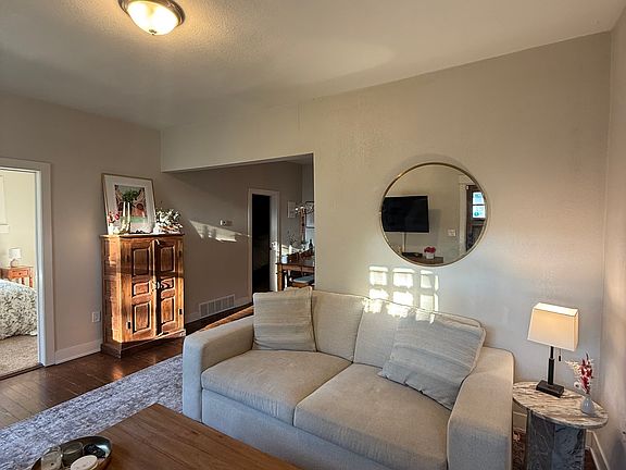 Renting out a furnished bedroom (can also be unfurnished if preferred). The room comes with a brand-new bed, has two closets, and could fit a desk if needed. You'll share the bathroom with one other person. Common spaces include the living room, dining area, kitchen, laundry room, and a fenced-in front/backyard. There's also a large unfinished basement with plenty of storage space.