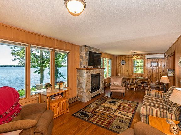 Welcome to the lake! This delightful recently updated 2+BR 2-BA lake home features a picturesque UP-NORTH setting with nearly level elevation to 100’ of shoreline highlighted with an excellent sugar sand lake bottom, crystal clear waters and stunning lake views. The home has a bright & cheerful feel with south facing windows offering great natural light, a waterfront sitting room that is used for an additional private sleeping area for extra guests. The open kitchen showcases new SS appliances-spacious informal dining & oak hardwood flooring; lakeside family room w/stone gas fireplace; a brand-new four-season porch that is a perfect retreat year-round; nicely landscaped grounds with beautiful gardens and a new lakeside stamped concrete patio…ideal for relaxing & summer entertaining. Additionally…there is a 3-car detached garage & storage shed for all your toys. Upper Hay Lake is a fantastic boating and exceptional fishing lake…come make lasting lake memories here!