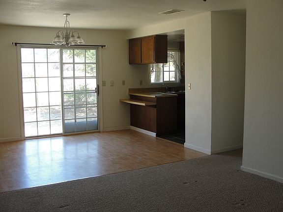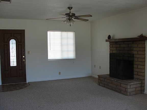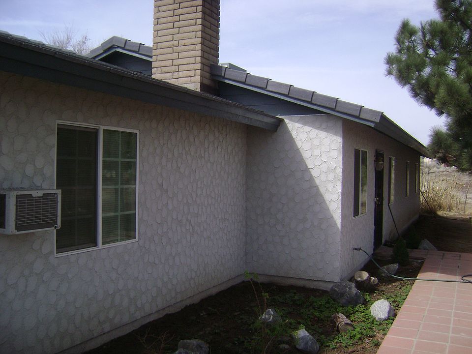 Super Cute 4 bedroom 2 bathroom house with a 2 car garage on a 82,764 acre lot enclosed by a chain link fence. Many improvements have been made to this house over the past 5 years including a tile roof, berber carpeting in the living room, hallway and bedrooms, and the exterior was transformed from wood siding to stucco. Installed new argon gas vinyl windows throughout, bedroom doors, garage door and upgraded sliding glass door. Other improvements include a new vanity in the master bathroom, vinyl mini-blinds in the bedroom windows, new outlets and switches, tile flooring in the kitchen and laminate wood flooring in the dining area. Improvements cost around $16,000 excluding labor. All appliances stay with the house: Dishwasher, refrigerator, new gas stove, microwave. Washer and dryer too! There is a large propane tank that comes with the property and the septic tank was cleaned and certified. There are fruit trees and three big native pine trees on the property with plenty of space to landscape and garden. Overlooking the desert with nice views of the mountains and city lights as well. Plenty of privacy as it is located 0.5 mile up a dirt road.
