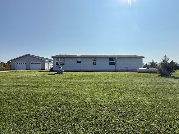Spacious 3-4 bedroom, 2-bath home on 10 peaceful acres at the end of a quiet dead-end road. This 1,456 sq ft home offers comfortable living with plenty of room inside and out. The property features two detached garages: a 24x40 pole barn for storage or equipment and a 32x40 heated garage complete with a bar--perfect for entertaining, hobbies, or a workshop. Surrounded by acreage, this home provides privacy, space, and versatility while still offering the comforts you need. Call for your showing today!