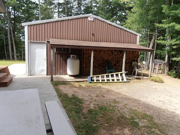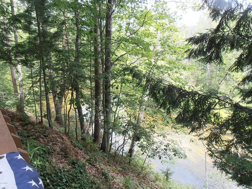 This impeccably maintained year-round cabin home on the banks of the Little Manistee River offers an appealing option for many lifestyles. Accessory features include a 32x26 pole barn/garage with workshop, 10x14 storage shed, fenced garden area & attractive deck for outdoor dining. Entry is a 9x20 ceramic tiled space with built in storage & stairway accessing full walk-out basement with screened porch overlooking river, additional bedroom plus large space perfect for family room/rec room use. Main level of home includes open plan incorporating charming kitchen, dining area & living room with high-end laminate flooring; 32x8 3-season room with special views of the river; master bedroom & full ceramic tiled bath. Retro circular stairway leads to loft above measuring 281 square feet.