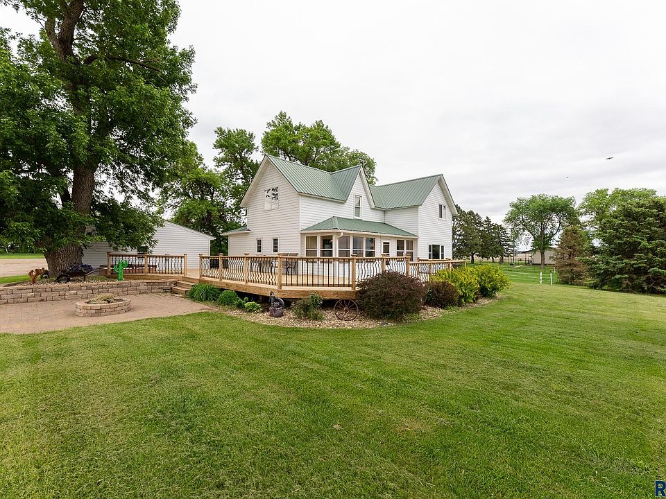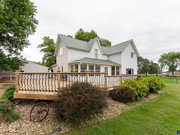 Don't miss out on an incredible opportunity to own a turn-key, income producing equestrian or livestock facility with a charming renovated 3 bedroom home minutes from Sioux Falls. Could be used as a fully operational boarding, training or breeding facility. Featuring 125 x 220 outdoor sand arena with lighting and sound system, 7 outbuildings, 18 stalls, 4 horse hot walker adjacent to indoor round pen with tack room and stall barn, HEATED wash bay, 5 heated automatic waterers, multiple paddocks, hay loft, feed storage and newly poured cement near the loafing shed for easy cleaning. 50x80 shed can be used as indoor riding or toy storage. Entertain your guests with a massive wrap around deck or peaceful sunroom. Kitchen provides plenty of updated cabinet space, large dining room with updated hardwood floors, half bath with main floor laundry, and spacious living room. Upper level presents 3 bedrooms with full bath, complete with whirlpool tub and heated tile flooring. Horse lover's dream!