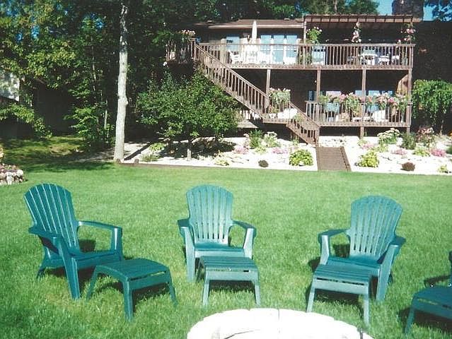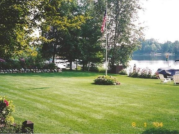 Enjoy floral gardens and soothing water fountain as well as a fabulous view of Lake Lancer. Over 2800 Sqft of living space in this 3 BD, 2 BA ranch with full finished walk-out. Spacious kitchen with seating counter, pantry and open floor plan to dining and living room. Beautiful stone wood burning fireplace. 3 Season sunroom, family room, French doors, hot tub, 9x10 storage room, additional storage off deck and overlooks a beautiful 80ft shoreline. Extended 2-car garage with a bonus 12x23 heated workshop with peg board. Kitchen and lower level have radiant heated floors, Hunter Douglas Blinds, Master Bedroom with a view, dual closets and main floor laundry. Professional landscaping, sprinkler system, exterior lights Ownership provides access to 18 hole championship golf course , pro shop, restaurant/pub, indoor heated pool, fitness center, tennis/bocce ball courts, chalet/sledding hill, walking trails, activity bldg, access to 2 all sports lakes & 15 beach clubs