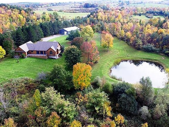 Once in a LIFETIME opportunity! Former Builders personal home, built in 2000, this stunning retreat on 13 acres of total privacy. 4BR 3FULL bath in main house includes FIRST FLOOR MASTER with walk in closet, jetted tub & great view. Second floor has bedroom, full bath PLUS loft space! True In-law has 1br 1bath with separate entrance & separate utilities for guests, in-law, or rental income. Ample closet space throughout. Gas Fireplace, 12 course walk out basement. ALL FRESHLY PAINTED & BRAND NEW CARPET! Mudroom, 1st floor laundry, attached 2 car garage PLUS 40x64 OUTBUILDING with workshop! Geothermal heat, keeps bills LOW. Stocked Pond and view for miles from the trex deck. Cut trails & tree stands. 25 minutes south of Henrietta. FIRST OPEN SUNDAY 10/22 12-2pm!