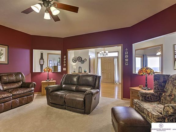 4,546 Fin Sq Ft Sprawling Ranch on 2.17 ACRES ~ Huge Ktch - Private Deck, w/Eat-In Area, Lrg Batwing Island, & Formal Dining, HRWD Flrs, Wrap Around Deck, HUGE Lower Level w/Reversed Walk-Out Shows Off Stunning Views, 2nd Ktch, 4th Bdrm, ¾ Bth, Master Ste w/2nd Fireplace, Walk-In Closet, Jacuzzi Tub, Up to 3 Horses Allowed, see Covenants, Mins to Omaha, Rural Water, High-Speed Internet, Low Tax Levy, Newer Heat Pump & Furnace