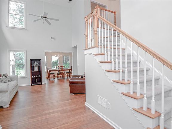 This newly renovated & well maintained home offers many charming details and features. Home boasts an incredibly bright, airy, and open interior with soaring 2 story cathedral ceilings & brand new bamboo hardwoods throughout the 1st floor. The main level offers 3 different rooms for major flexibility including the main living area with subway tiled fireplace, a dining room/flex space, & a 2 story den-perfect for time together or apart. The timeless & open kitchen design includes newer stainless steel appliances, new subway tile backslash, & new light speckled granite countertops. 3 bedrooms upstairs include a spacious master with trey ceilings, attached sitting room, & large en suite with double vanities, separate shower, and soaking tub overlooking the beautiful fenced back yard. All with newer systems including brand new HVAC, roof just under 2 years old, beautiful painted trim, and all in the perfect location just minutes to all of the incredible food, shopping, and drinks that downtown Acworth & Kennesaw have to offer!