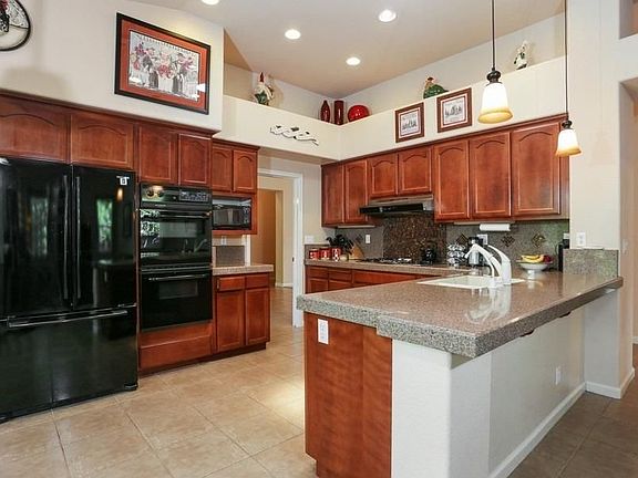 One of a kind single story backing to a private lake. Incredible backyard with infinity edge pool, built in BBQ and stunning views of the private neighborhood lake. Desirable floor plan with remote masted suite on one side, two traditional bedrooms and an office/study on the other end. Three car attached garage