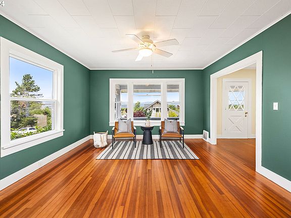 This Craftsman-style home seamlessly blends historic charm with modern updates, creating a sanctuary for those seeking comfort and elegance. The inviting living and dining areas feature original woodwork and built-ins, perfect for entertaining. The well-appointed kitchen has updated appliances, ample storage, and a breakfast nook. Enjoy breathtaking views of the Columbia River from your living room windows and the covered front porch. Additional features include a 3-car detached garage, RV/boat parking, office/den space, and custom built-in BBQ. Plenty of room for gardening and outdoor dining in the fence yard. Nestled in the Alderbrook neighborhood, this property offers a peaceful retreat while being a short drive from downtown Astoria, parks, and local amenities.