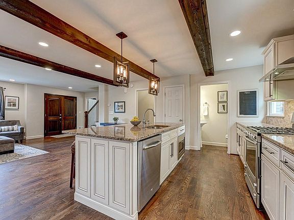 - Kitchen Features: Breakfast Bar, Eat-in Kitchen, Pantry, View to Family Room, Kitchen Island, Solid Surface Counters, Keeping Room, Cabinets White