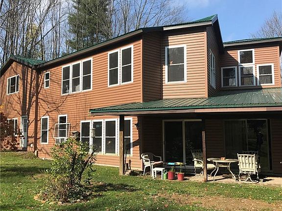 This lovely 3,500 sq.ft. home sits on 10 acres of wooded land with stocked pond in back yard. Nice small cabin next to pond, electric to pond. Front door is shaped like a door out of a fairy tale and opens to a rustic entryway part of original built home. This Kitchen, dinning room, living area is all open concept, all accented by wood burning fireplace. The main home was built in 2018. All new electric and plumbing through out home. All windows in the home are new. Geothermal/ radiant heat on first floor with cork covering. Second floor are radiant heated floors. Large first floor laundry rm. The garage is geothermal forced air heat has fire rated sheet rock with added work shop/studio. So much storage though out the home. First floor master bed and bath. Has a potential to have 6 bedrooms all large with lots of light coming in. Newer septic and will be approved by county and pumped before sale. New well, great water. The home needs some additional drywall work as the owners are unable to complete. I believe this is a asset to the buyers as they can finish as they choose. Such a lovely home with so much potential!