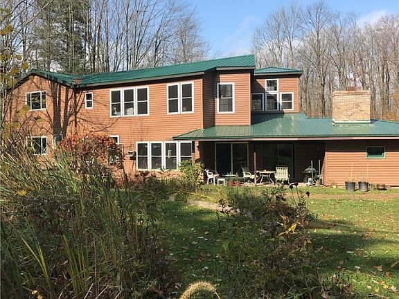 This lovely 3,500 sq.ft. home sits on 10 acres of wooded land with stocked pond in back yard. Nice small cabin next to pond, electric to pond. Front door is shaped like a door out of a fairy tale and opens to a rustic entryway part of original built home. This Kitchen, dinning room, living area is all open concept, all accented by wood burning fireplace. The main home was built in 2018. All new electric and plumbing through out home. All windows in the home are new. Geothermal/ radiant heat on first floor with cork covering. Second floor are radiant heated floors. Large first floor laundry rm. The garage is geothermal forced air heat has fire rated sheet rock with added work shop/studio. So much storage though out the home. First floor master bed and bath. Has a potential to have 6 bedrooms all large with lots of light coming in. Newer septic and will be approved by county and pumped before sale. New well, great water. The home needs some additional drywall work as the owners are unable to complete. I believe this is a asset to the buyers as they can finish as they choose. Such a lovely home with so much potential!