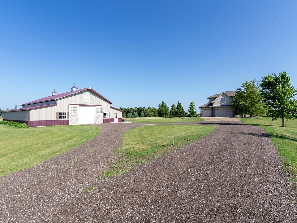 This incredibly private home on 12 acres is truly picture perfect! From the gorgeous 4 bed/4 bath 2 story custom home, to the 60x72 barn w/concrete floors, heated/cooled BAR & 3/4 bath, it's an opportunity like no other. Is peace & quiet your love language? Sit on the covered front or back porch & read a book or go stroll the land & listen the birds sing while you soak in the views. If you love entertaining, gather guests in the kitchen, dining & main living rm w/ it's 2 story wall of windows + catwalk where you can see for miles & the sunsets are pure art. Prefer a full on celebration? Invite guests to your OWN BAR, sit under the stars around the patio firepit or listen to music on the barn speakers while you throw horseshoes. ALL 9 TV's throughout home & bar stay. RV plug wired next to barn. Updates include new furnace/AC in 2022. 600+ trees already on site. Come visit to experience all that your new home has to offer and get started on living your dream!