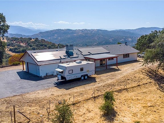 Price reduced from $670,000 to $614,000. Discover this 59.43 acre property that has a 2,416 square foot home that was built in 2003. First time on the market since the owners built the home. This well maintained home has 4 bedrooms, 2.5 bathrooms and sits atop a secluded knoll. From the extra large living room bay window there are magnificent views of the Sierra Mountains and the valley below. The view is amazing when the mountains are covered with snow. There is also an attached 2 car garage and a lot of extra parking. This property recently had horses, cows and goats roaming the vast 59.43 acres. Recent upgrades include a new A/C and bought and paid for Solar with a back up unit. Also, there is a septic tank, heat pump and a 5,000 gallon water tank. This property is close to the Sequoia National Park, Kings Canyon National Park and Lake Hume.