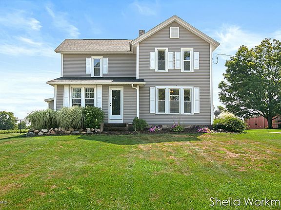 More information or to walk through the home contact 269-838-1980 NEW CARPET INSTALLED FOR THE ENTIRE SECOND FLOOR, MUD ROOM AND MASTER BEDROOM. Beautiful family home in Middleville, 2 miles from Thornapple Kellogg Schools. Close to the new amazon building. We are listing 3.12 acres. Just a short drive to Grand Rapids. Enter this home and you will find a kitchen, main floor laundry, 2 bedrooms, dining room and an open family room. The second Floor has an additional 3 Bedrooms. The landscaping surrounding the home has been well maintained and has many perennials (peonies, poppies, hostas, white rose bushes, lilies, day lillies and daffodils). You will also find 2 well maintained barns with lots of storage space and a detached garage . Main floor of the home has recently been remodeled. Large walk in closet off from the master bedroom. New propane furnace November 2016 and has central air conditioning. Also has solar panels that heat the house. Clean Michigan Basement. electric box was rewired in 2014 and the water pipes were redone in 2016. A new roof was put on the summer of 2013 and the home was resided with vinyl in 2014. Already hooked up with freedom net internet and Dish network. You are welcome to use your realtor at your expense.