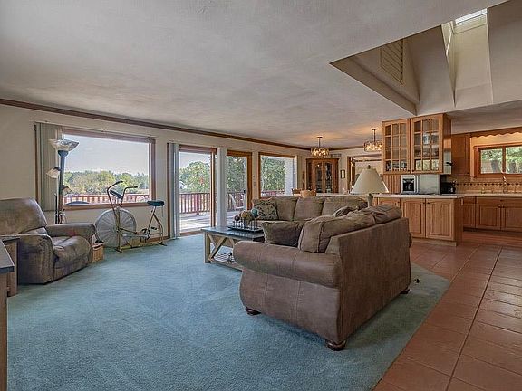 Byron Schools! River Front! 1.33 Ac MOL. County Taxes! All brick fully exposed ranch w/attached brick 4 car garage - 24.10' x 50'. Great Rm open to kitchen is 30.5 x 19.2 WOW! Wall of windows & 2 sliders to deck to view the river. Watch an eagle catch a fish and have it stolen. Spring & Fall the white pelicans put on a show. Loads of wildlife to observe, boating & fishing. Awesome sunrises! Focal point Great Rm is floor to ceiling brick FP w/cath ceiling & skylite. French doors to impressive FR w/2 walls windows & 2 sliders. Currently, DR. Main floor laundry. Mstr bdrm, 2nd bdrm access to bath. Guest bath - double vanity. LL spacious FR open to 2nd Kitchen, wall of windows & slider, 3rd bath & 2 nice sized bdrms. Storage. Exudes privacy & tranquility. Located on dead end road.
