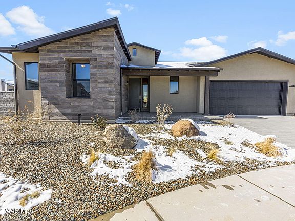 Welcome to Mandalay's 704 Mountain plan built to completion in the timeless master planned clean energy community of Jasper here in the true 4-season climate of Prescott Valley! Waiting on a never ending checklist for your new home to be finished? This beauty is move-in ready! This striking architectural design with modern tech for optimal energy efficiency is also complete with upgrades and high end finishes in what feels like every direction you look. 4878 N Glasgow Place is settled into an oversized lot and totals 2,320 sqft featuring an open split floor plan with 3 bedrooms, 3 bathrooms, a large den/office with private patio and a 2 car garage. Stunning street appeal with low maintenance landscaping and paver driveway!