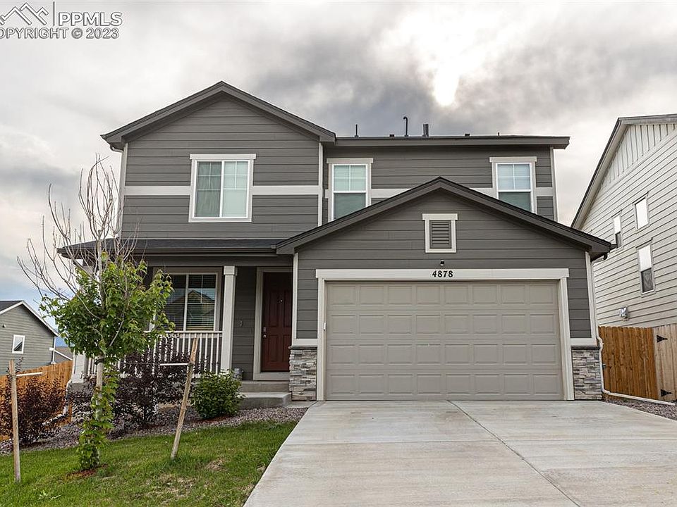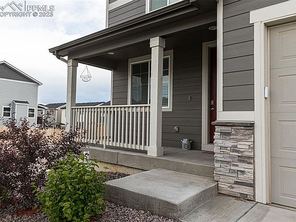 Not sure you want to wait for a new build process then this may be the perfect home for you! This property is only 2 yrs old (Richmond American Home) and has a welcoming warm feeling the minute you step onto the oversized covered front porch, There is a great size flex area upon entry for office or formal sitting area then flows into the main open concept living room/dining room/kitchen, This kitchen has beautiful marbled black/white granite countertops with a gas stove for those that love to cook-that is a must! Both front and back yards are professionally landscaped so that now you only have to maintain this great property on a large corner lot, The upper level gives you additional loft/flex area that can be used for all the toys or just for hanging out watching a movie-the view from that window is spectacular as you can see all of Cheyenne Mountain as well as Pikes Peak! Don't miss coming to look at this one in person you will not be disappointed at all....well maintained home.