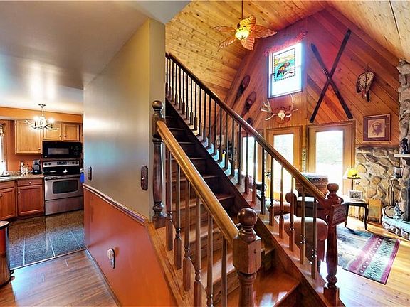 Check out this beautiful one of a kind home in Starpoint Schools. Rustic charm abounds! The home features one first floor bedroom & large full bathroom w/ stepless entry into the tiled shower. This home has a beautiful updated kitchen, granite counters, granite tiled floors & stainless steel appliances. The kitchen opens to the dining & living room which features a cathedral ceiling, refinished & repurposed hardwood floors from an 1800's cotton mill & a gas fireplace. The 2nd story offers a private loft style bedroom w/ additional 1/2 bath. The backyard is your own private oasis, not only is the yard completely fenced you can enjoy WNY summers on the covered stamped concrete patio, next to the built in stone fire pit or enjoy the sounds of water next to the meticulously landscaped pond. Perfect home for dog lovers with 3 kennel spaces off the garage w/ it's own dog run in the back. Garage has large attic space w/ electrical already run, could make a great inlaw space/additional finished area. No maintenance metal roof, furnace replaced in July 2020, a/c unit approximately 3 years old & full house generator. This house has it all! Square footage listed as measured by professional.