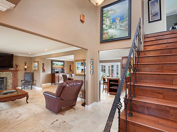 Enjoy fabulous lagoon views from upstairs bedrooms! Great open floor plan providing a spacious family room amid a romantic stone fireplace with stone surround and wood mantel, and a downstairs master bedroom with French doors opening to inviting spa. Relaxing backyard with a huge lawn area and an above ground pool. Ultra-efficient two story home designed with modern amenities throughout including newly added LG solar panels and monitor, upgraded plumbing system and a Tankless water heater. See supplement.