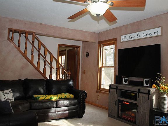 Hard to find 6 acres in a peaceful country setting and great mature shelter belt. Gorgeous professional landscaping shrubs & perennials. You can relax & unwind at the end of a busy day and wait for wildlife to pay a visit. 10 miles to Brandon and 17 miles to Sioux Falls with interstate, hardtop road and a little gravel. 3 bedrooms on the upper level and updated windows. The main level offers a bedroom, living room, dining room, kitchen, laundry, bath & south facing 3 season porch. Updated Hi efficiency furnace, vinyl siding, Jeldwin windows, main level dining, living, bath, bedroom. Mechanicals include a Marathon electric water heater, updated electrical, radon mitigation installed and rural water. The Generac 15 KW Emergency transfer generator that can run the entire home off propane. 3 sheds and garages and room for more. There is also open space for livestock and gardens.