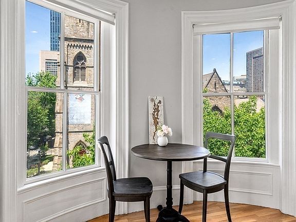 Everyone knows the South End's 'Coke Bottle Building!' Bathed in light, this row-end brownstone has the best sun exposure from the South and West but then also has views of the Back Bay to the North. This kitchen of this home has been expertly crafted with quartz counters and a welcoming breakfast bar. There is great storage, tile back splash, pendant lights and a farmers sink. Friends and family will love the size of the entertaining space with possible dining areas at either end of the room. The bathroom has been expanded and has double vanities, excellent counter space and a large step-in glass shower. The bedroom is spacious and airy with four large windows overlooking Rutland Square. Maybe best of all, the walk-in closet is massive with carefully laid out storage and custom shelving. Step out of the AC and unwind at the end of the day on the private, treetop terrace and decide which of the neighborhood's great restaurants to walk to for dinner.