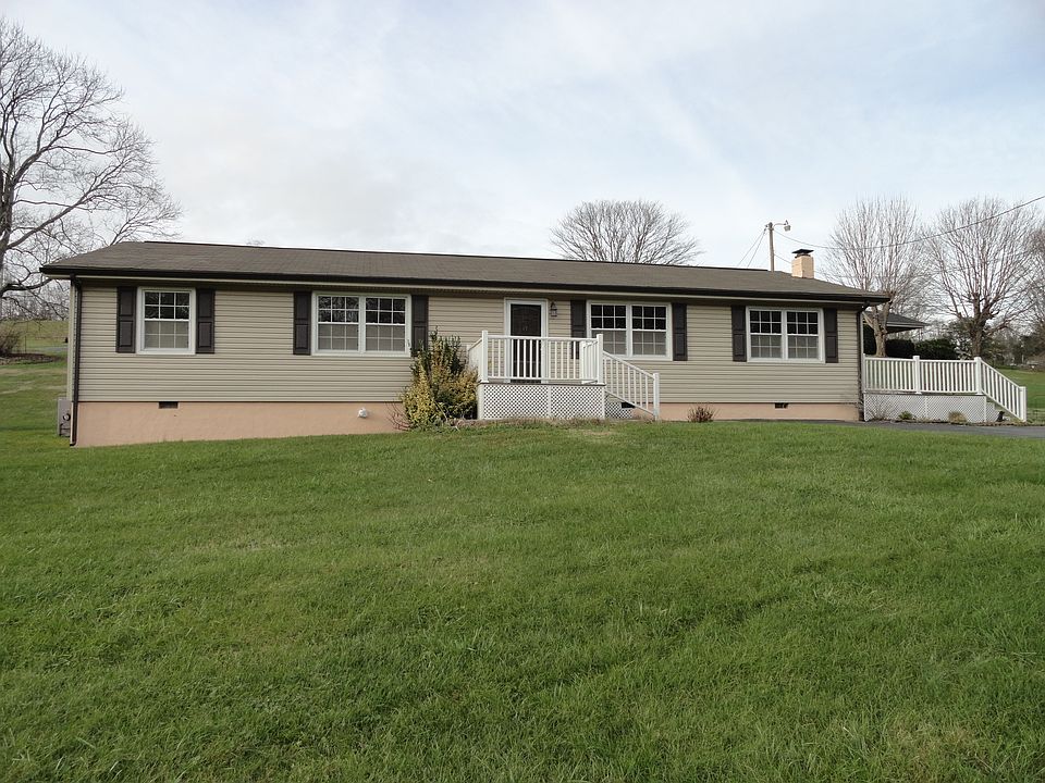 Come on home to the country. Lots of room in this spacious 3 bedroom ranch. Hardwood floors in living room & all bedrooms; ceramic tile in bath, family room & office. Covered back porch w/koi pond & flower beds; large side deck for a perfect outdoor entertaining space.
