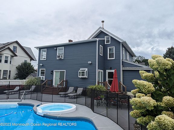 SUMMER RENTAL Welcome home A charming and immaculate home only 2 blocks away from the beach! A beautiful backyard with a heated in-ground pool, hot tub and outdoor kitchen. 4 spacious bedrooms, 3 FULL baths (including one on the first floor - with easy access to the backyard) and hard wood floors throughout. Steps lead you up to the master suite with a large walk-in closet. Kitchen equipped with granite counters and stainless appliances. Open dining room connects you to a sitting area with a sliding door to backyard. 3rd level of house is completely open and can be used as a play area or additional storage. Conveniently located in N. Long Branch minutes away Monmouth Beach and Sea Bright. Everything you need is just a bike ride away!