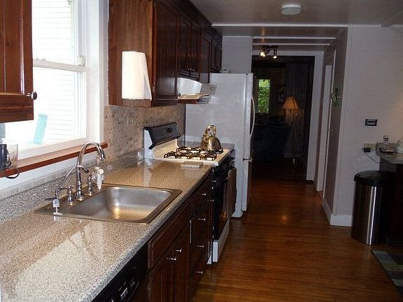 Remarkable updated farmhouse-private gardens, deck, gazebo & encl hot tub area. Exceptional upscale eat-in kitchen, great cupboards that blend old with new beautifully. Main floor has 2 beds, full bath, laundry + delightful room (office?) that opens to patio. Second floor has vaulted ceilings,large bedroom and fantastic bath with soaking tub & large shower. Wide plank floors thro living room,office and bed down. Three heating zones plus wood pellet stove with thermostat. Extra apartment off garage with own patio. Great space. Invisable fence and Home Warranty Ins.in Place.