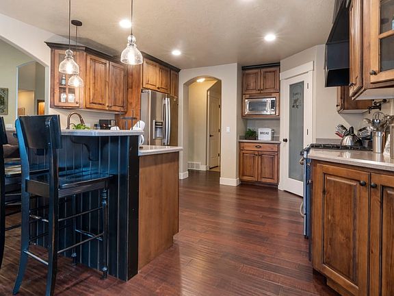 This corner lot home rests in the foothills of Salem with magnificent views of the surrounding mountains and valley. Property includes a fully finished basement with wet bar, built-in ice maker and projector with screen perfect for entertaining. Exterior includes beautiful landscaping with a large pergola and hot tub. Exterior lighting that accents all aspects of the home.