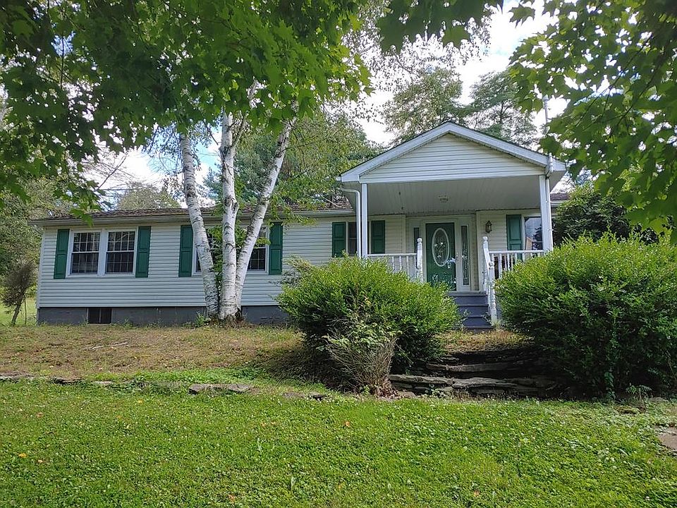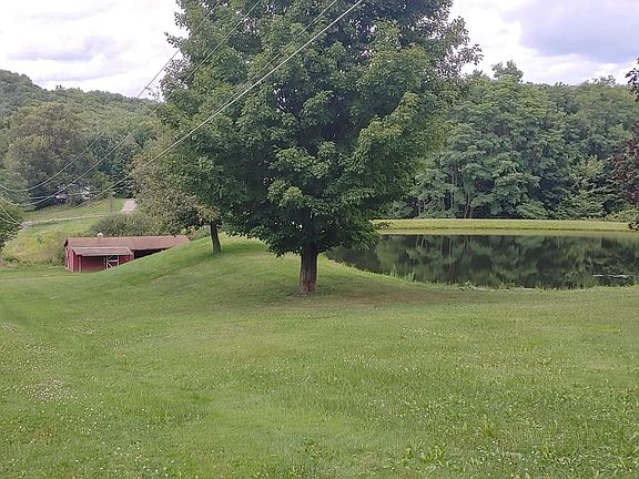 This gorgeous ranch home that sits on just over 8.5 acres with a full basement and overlooks a pond. The home is a 3 bedroom 2 full bath on the main floor with a possible additional bedroom down in the basement with a 3/4 bath. The kitchen has plenty of beautiful wooden cabinets and a lot of counter space along with a farmers sink. There is a formal dining room that the whole family can have dinner together without bumping elbows. The living room is very large with a built in bookcase and a tongue and groove ceiling. There is an oversized attached 2 car garage with a workbench. A small apple orchard is behind the home and a small red barn when you come up the driveway.