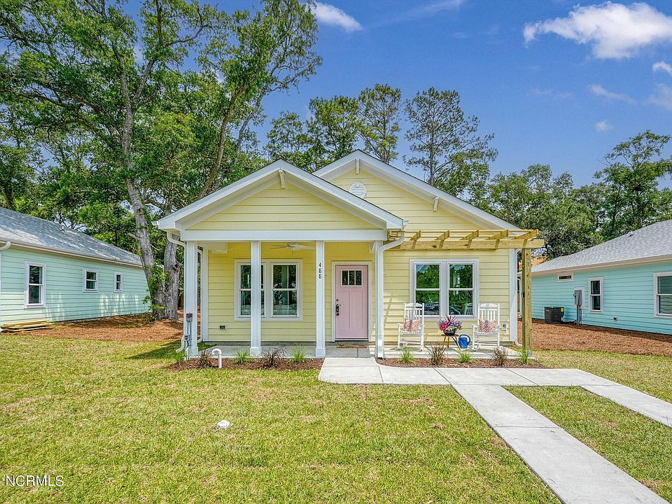 This newly completed cottage home is built by Diamond Award Winning SeaCoast Homes and offers 3 bedrooms and 2 baths. The kitchen is nicely equipped with refrigerator, dishwasher, range and microwave. And that's just the beginning. Quality upgraded finishes throughout with a Victorian/Craftsmans style exterior, Hardie board siding, DP50 windows, spray foam Insulation, granite countertops with white shaker cabinets in the kitchen, LVP flooring in main living areas and carpet in the bedrooms. And you'll want to check out the primary bathroom vanity. It Is Amazing! You won't find a gem like this in a convenient location for under $400,000! Don't wait, become the owner of this home today!