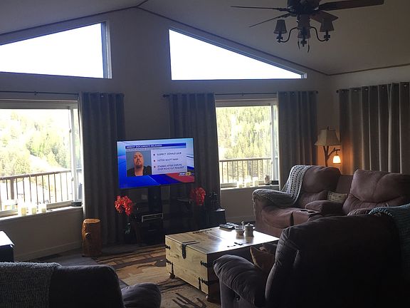 CHECK OUT THE VIRTUAL TOUR ON THIS STUNNING HOME AND GET ready for some spectacular Pikes Peak and Elk Lake views. If that's what you're looking for, you've come to the right place. This ranch style home has been updated throughout. As you come through the front door, the entry hall is slate tile, perfect for getting out of the boots, hanging up your coats, etc. There are 2 bedrooms on the main floor, the guest bedroom features an entry into the updated hall bath from the bedroom. You will see quality is prevalent here. Alderwood solid doors, new flooring on the main floor. The kitchen features newer appliances, gas stove, granite countertops, and under cabinet lighting. There's a wonderful overflow area from the eating area to accommodate plenty of people for get togethers and entertaining. It can also serve well as a breakfast bar. The main living area gives stunning views of the Peak and of Elk Lake (the large lake in Highland Lakes). A wood stove compliments the space! The downstairs is devoted to the master, with the attached 5 piece bath, with a jetted tub, a pellet stove and large windows, it's an incredible retreat. Highland Lakes features several lakes that can be fished (with a private fishing permit from the HOA), a community center, for community gatherings and private events for residents, a playground, basketball court, and horseshoe pit. Come take a look and fall in love. Exterior is being repainted first week of May.