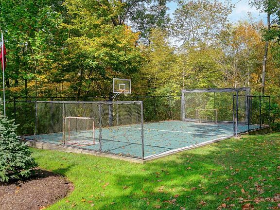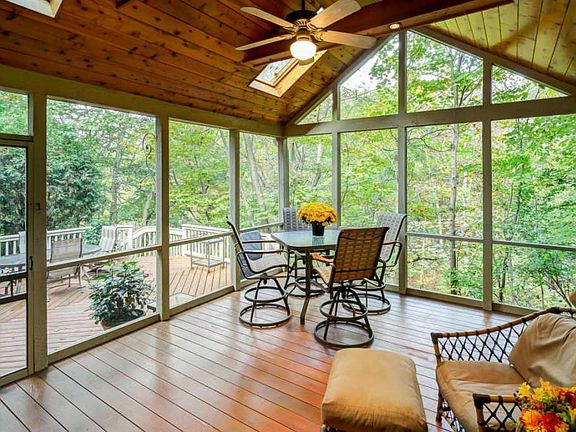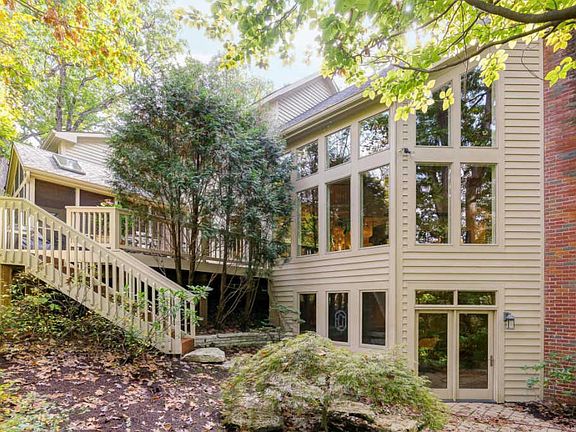 Let your imagination soar in this extraordinary home, custom built by Steve Heinlen. Unique wooded retreat boasts custom wood-working & vaulted ceilings from trees milled from lot. Steeped in luxury & comfort, this playful floor plan entertains w/ease boasting 3 floors of deluxe space in 5995 sqft including full walk-out LL, Bar, Gym, Game-Rec Rm & guest ste. Original owners convey this fastidiously cared for property ideally located along private woodlands offering perfect blend of privacy + access to amenities. 1.17 acres features Sports/Tennis Court w/garage storage + 2+ Car Garage. Newly painted, carpet & pristine quality. Inspired rustic screened rm opens onto deck w/natural gas ln for grill. Decadent 1st flr owner's suite + 4 BR feature en suite bath. Relax in comfort inside & out.