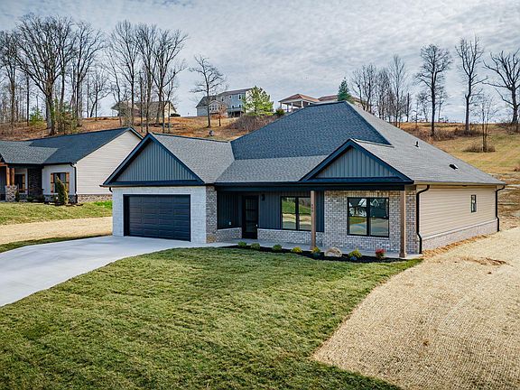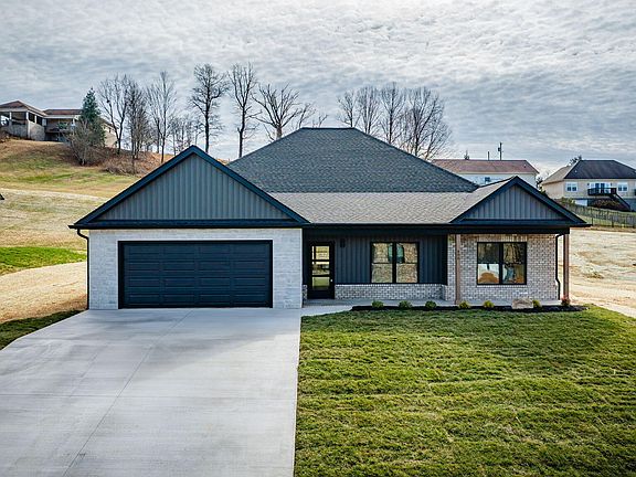 en suite primary bathroom has a custom tile shower with lighted vanity mirrors and built-in bluetooth speaker. The open living room with coffered ceiling is bathed in natural light, with a stunning gas log fireplace. The kitchen is equipped with beautiful soft close cabinets, quartz countertops, stainless steel appliances, 6 foot kitchen island and pantry. As an extra bonus you will discover the private zoom room for attending zoom meetings from home or utilize it as a small home office. Luxury vinyl plank flooring throughout with tile bathroom floors. This home also has a covered front porch and covered back patio with outdoor ceiling fan. Skyline Landing is a hidden delight with sidewalks and street lights and is located just 5 minutes from downtown Jonesborough or 20 minutes to Johnson City. This quality built home comes with a one year builder's warranty. *Shower door still to be installed. Taxes not yet assessed. The HOA fee is $150 per year with a $50 buyer paid transfer fee. All information deemed reliable but subject to buyer/buyer's agent verification.
