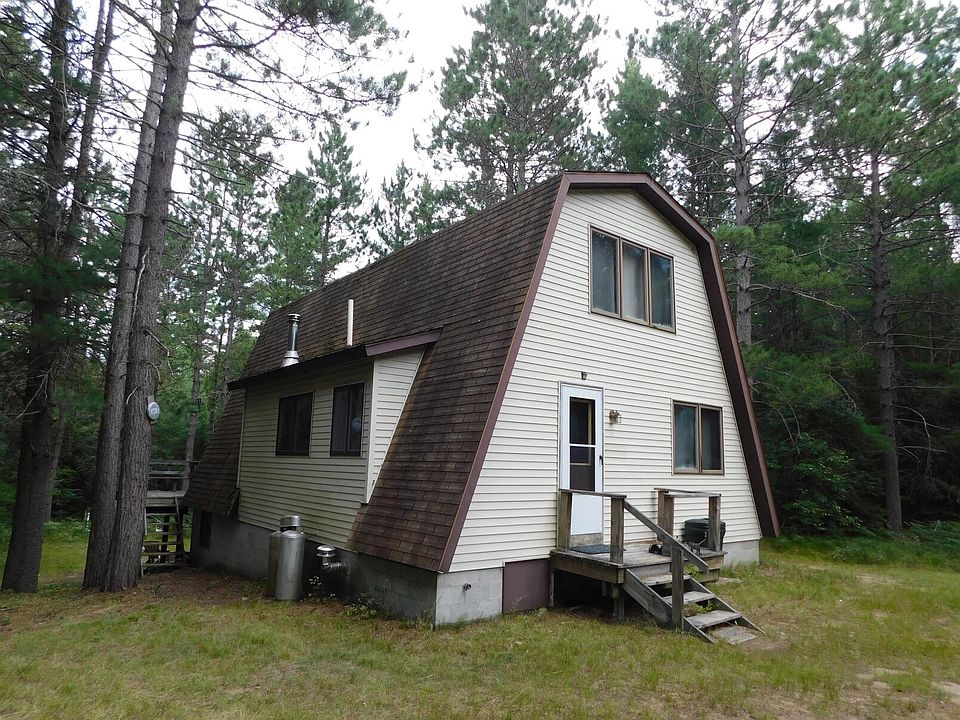 SECLUDED AND PRIVATE- 3 bedroom, 1 bath home or cabin on 31 secluded acres BORDERING FEDERAL LAND ON TWO SIDES. Food Plots, 3 box blinds, 4 miles to the AuSable, Timber frame construction, with lots of pine interior. Custom woodwork décor and an ''up north'' feel. Open cathedral ceilings to a large loft. Door walls onto the deck overlooking tons of wildlife including bear, turkey and deer. LP Gas and wood heat, as well as solar power and generator. Great hunting property. Garage with storage in the basement. Fully furnished, A-2853