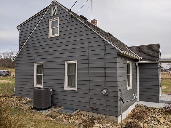 Selling our well-loved home/farmette. The house is 3 bedroom / 1.5 bath. The land is 2.687 acres with a greenhouse and fruiting orchard of over 30 trees/bushes. There is a 2 car attached garage and a 2 car electrified detached garage (used as a workshop). There is one storage shed in the yard and one storage shed attached to the detached garage. In 2010 a new furnace was installed, including ductwork to both floors, as well as a heat pump/central A/C. Kitchen and bathrooms were remodeled in 2010, and the hardwood floors refinished. The main floor of the house has a huge sunroom, kitchen, living room, dining room, full bathroom, and an extra room that could be a master bedroom, office, or toy room. Upstairs is a half bath, 2 bedrooms, and an extra room off of a bedroom. The extra room is currently being used as a child's bedroom but could be a walk in closet, toy room, office, or storage space. There is plenty of storage in the attic which is easy to access from a door in the bedroom. There is a full basement with lots of room for storage and this is where the washer and dryer are kept. The taxes are low for Greene County at $2115.38 total. You are surrounded with beautiful views of farmland.
