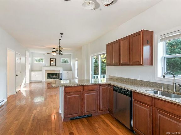 Classic colonial built in 2008 with modern sensibilities. Open floor plan blends the kitchen with cherry cabinets and granite countertops and the living room with fireplace and leads out onto large deck for a premium entertaining experience. Sunny and spacious, with gleaming hardwood floors, and high ceilings. Separate dining room, family room, and den. Four bedrooms - two with full baths. Master suite boasts two, count them two!, walk in closets, a dressing area, and full bath with double sink, and separate tub and shower. Dedicated laundry room on the top floor. Fourth bedroom located on the bottom floor and could easily be made into an in-law suite with separate entrance. Fenced in back yard. Two car garage. Minutes from downtown Mystic and Noank. Freshly painted and ready for you to move right in.