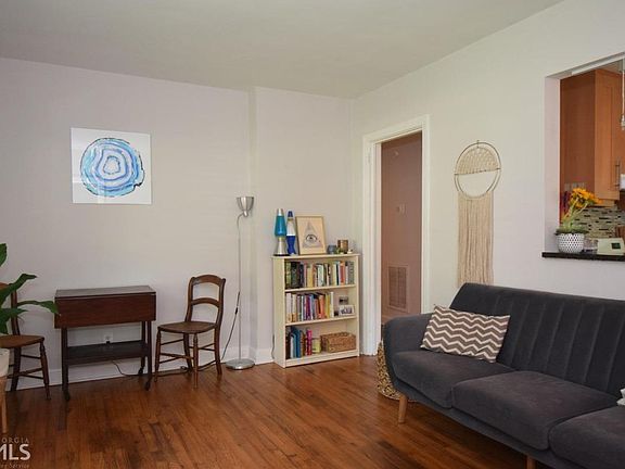 Move-in ready, stylish home with garage within 1 mile of downtown Hapeville's restaurants, bars & brewery! Hardwood floors throughout. Upgraded kitchen with pass through bar to living room. Efficient windows with charming shutters for privacy. Upgraded bath with walk in shower and storage. Laundry room with washer & dryer. Two ample bedrooms with closet space. Generous partially fenced yard. Quick access to both I-75 & I-85. Single car garage. Alarm system. Tenant is responsible for utilities.