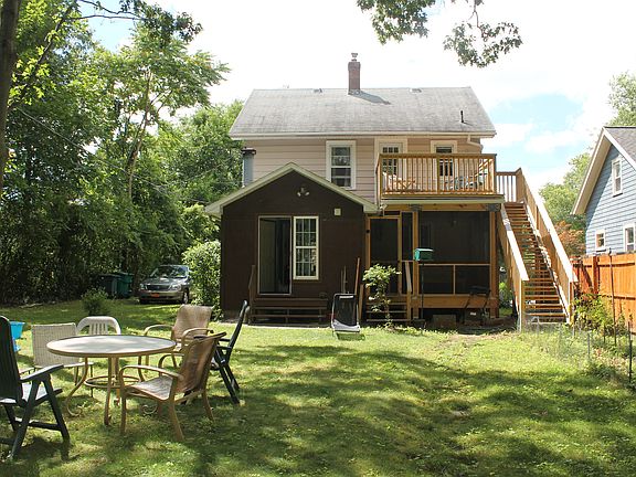 This charming 3 bedroom home features an expansive backyard with a newly installed privacy fence and captivating view of Irondequoit bay. Our comfortable living room with western exposure, lovingly maintained kitchen, and superb second story deck, accessed from the master bedroom, make this the perfect home for couples and young families. Perched on the Western bank of Irondequoit Bay, our prime location is just 300 yards from local bike trails, walking distance from lake front restaurants and bars, a 5 minute drive from Wegmans, and has direct access to RT 590. DETAILS: - Bedrooms: 3 - Bathrooms: 1 full 1 half - Interior: 1,484 sq ft. - Lot Size: 5,663 sq ft. UPDATES INCLUDE: - Completely refinished hardwood floors throughout entire home. - Remodeled reading room with ample natural light. - Brand new second story deck accessed from master bedroom and yard. - Finished screen in porch facing Irondequoit Bay. - Upgraded powder room. - Newly installed privacy fence. For questions and interest please call Sarah at (585) 485 4883.