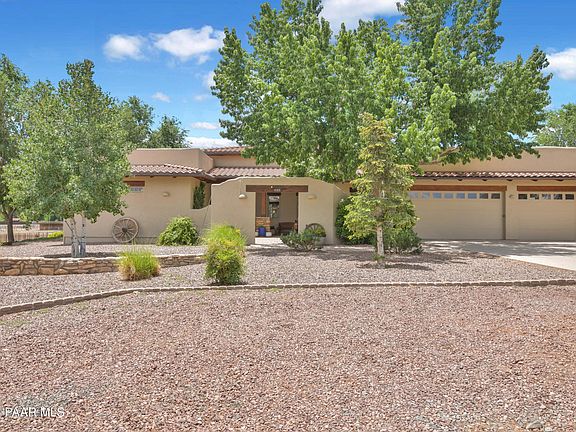 Stunning single level custom home with great views of Granite Mtn in the heart of Prescott but has no HOA or CC&Rs! 3400 SF with unique features throughout. Open floorplan with two great rooms (1) formal living and dining room and (2) kitchen, breakfast nook & family room. Chef's dream kitchen with expansive granite counters and breakfast bar, enormous walk-in pantry PLUS butler's pantry, wood front sub-zero refrigerator, double wall ovens and warming drawer. Family room has fireplace and TV niche and looks out over inground pool. Oversized master suite with luxurious master bath, 2 walk-in closets, steam shower plus jetted tub, separate vanity areas. Guest bedroom wing has 2 bedrooms and jack-n-jill bath. 1300 SF AZ Room with stamped concrete floors & gas fireplace. Continued...