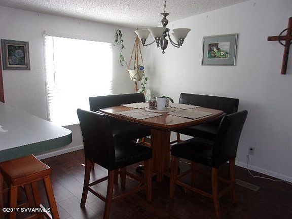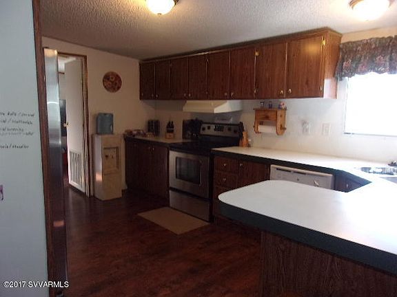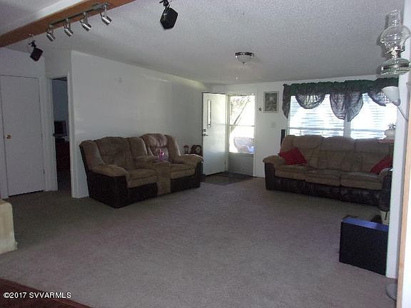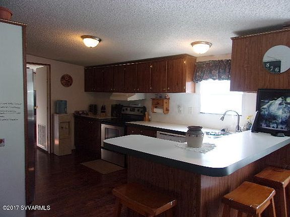 Camp Verde: In town location. Grass front yard, shade trees, rose bushes, brick walkway, leads the way to the covered entry. Living room has built in electric fireplace. The Kitchen/Dining room combo with breakfast bar has plenty of cabinets, stainless steel sink, pantry and a corner cabinet/counter that would make a great coffee bar. Bedrooms have large closets. The oversized master bedroom has a retreat that would make a great office, work-out room or hobby room. Master bath has garden tub and separate walk-in shower and large walk-in closet. The large laundry room has an additional pantry and space for a freezer or use for extra storage. Property has a sprinkler system on timers for both front and rear yard. Large workshop has 220 electric and concrete floors. Property is fenced.