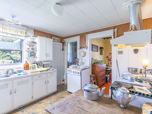 Stunning 1870's historic home! You'll immediately notice the beautiful woodwork details in the entryway & the unique wallpaper throughout. The home features a large LR, office space, sunroom & porch off the kitchen providing the perfect space for enjoying a cup of coffee. Upstairs is a balcony that offers stunning views of the town & a primary bedroom w/ a claw foot tub, & dual closet. Plenty of storage in the unfinished basement & the beautiful landscaping is the perfect finishing touch to this property!