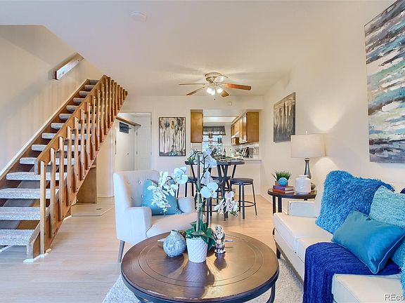 Light, bright and airy townhome. One of the few units in the complex that backs to OPEN SPACE. Well maintained home with newer flooring throughout. 2 large bedrooms with vaulted ceilings, Jack and Jill bath. Master bedroom has a bonus private sink and vanity. Laundry is located upstairs between the bedrooms, what more could you ask for! Enjoy the community pool and the private fenced patio in the summer and the cozy fireplace in the colder months. Lots of storage within the unit - plus there is a large crawl space! New furnace in 2017. Easily walk to public transit, light rail, the Aurora Library, the Aurora Municipal Center, restaurants, the Aurora Mall, and entertainment. Visitor parking near by. Just move in!