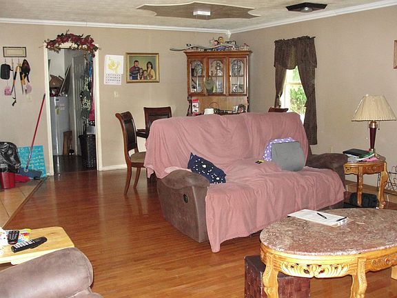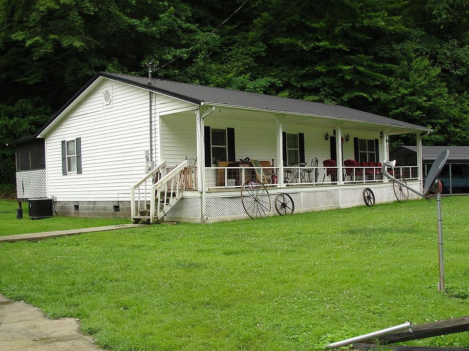 Lovely ranch home that should qualify for govt. loans. Property on both sides of road. House is sitting on approx. an acre with 3 bed/2ba., large front porch, screened back porch, lots of storage, detached two car garage (24x32), 2 storage buildings. central el. H/A, Other side of road is an older single wide w/ 2bed/1b, FA heat/window A/C, currently rented for $350 per month. and sits on approx. 20 acres of mainly wooded land. Barn/stg bldg.