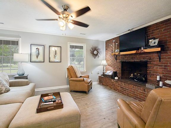 Beautiful 3 Bedroom 2 Bath Home situated on a Lovely Spacious Lot with Lots of Fruit Trees in the Back Yard! Great Room is complete with new gas logs in the Fireplace, and opens to the Kitchen featuring a new dishwasher and cook top, lots of Cabinets, and a huge walk in pantry. Kitchen opens to a huge covered patio where you can relax in all seasons. Large Bonus room as you enter the home from the side, and the Laundry room has loads of space! Formal Living Room, Master Bedroom has Walk in Closet, Master Bath with vanity and Large Tile Shower. Freshly Painted inside and out, Beautiful LVP Flooring throughout with carpet in the Bedrooms. Massive Shop you must see! Rocking Chair Front Porch!