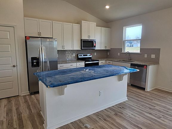 Step into a brand new home with this Energy Star-certified ranch, where convenience meets serene living minutes from top shopping and the new 540. It’s not just a house—it’s a lifestyle on a generous homesite over a half an acre in a tree lined southern Wake County community. This home features a bright and open floor plan with white cabinets, soaring 9-foot ceilings throughout, and an impressive lofted ceiling that elevates the living room and kitchen space. Cook and entertain with ease in the energy-efficient kitchen, boasting white cabinetry and modern whirlpool stainless steel appliances including the refrigerator. Luxury and practicality merge with durable Luxury Vinyl Plank flooring and cozy in the bedrooms. The owner's suite is a true retreat, enhanced by an upgraded bathroom for a spa-like experience at home. The extra large laundry room that includes the washer and dryer will make chores a breeze. Step outside onto the covered porch for a breath of fresh air, surrounded by the spaciousness of your new property. Here, you can live large while keeping energy costs down.