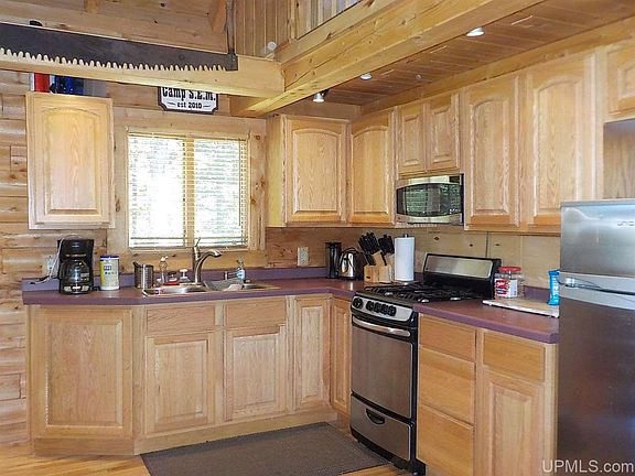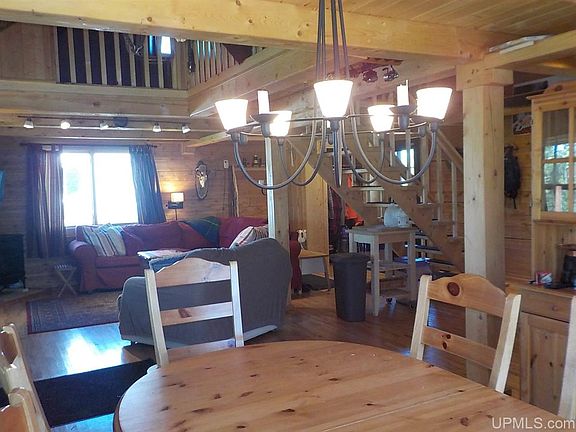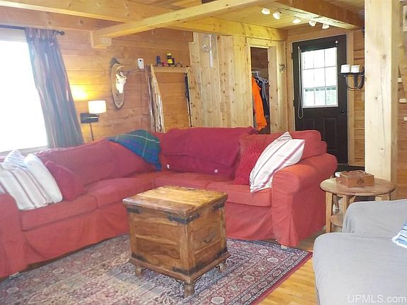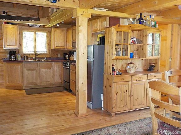 Custom built cedar log cabin set on a picturesque 20 acre parcel North of Amasa. Located within historic Triangle Ranch territory, this quality constructed log cabin is off grid with all the comforts. Main level has hardwood floor and an open Kitchen- living- dining room along with a ceramic tiled 3/4 bath. Upstairs there are two open loft bedrooms with a cat-walk connecting the two areas. Property has a drilled well, on demand water heater and a full septic system. Generator complete an inverter and a battery system. Newer wood stove heats the cabin. Enjoy quiet time on the 30' covered porch overlooking your acreage which borders 1000's of acres of CFA lands!