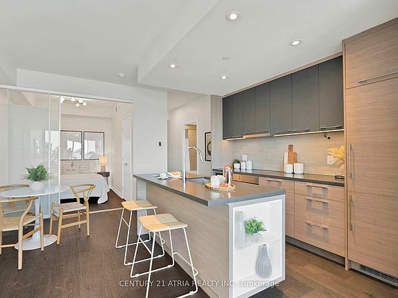 Envision yourself living in a two bedroom designer suite at one of Toronto's most desirable addresses, The Residences of 488 University Ave. Located in the epicentre of downtown Toronto, where world renowned institutions of healthcare, universities, financial centres and cultural arts intersect. Soaring high above the city scape, this split bedroom layout features exquisite finishings throughout from marble bathrooms, motorized roller blinds, integrated wine fridge, closet wardrobe system, expansive kitchen island and stunning, unobstructed skyline views. Welcome home - with valet parking, direct subway access to St Patrick's station and the pulse of the city at your doorstep, this address is crafted for your unparalleled enjoyment!