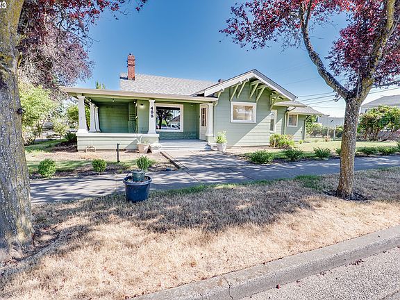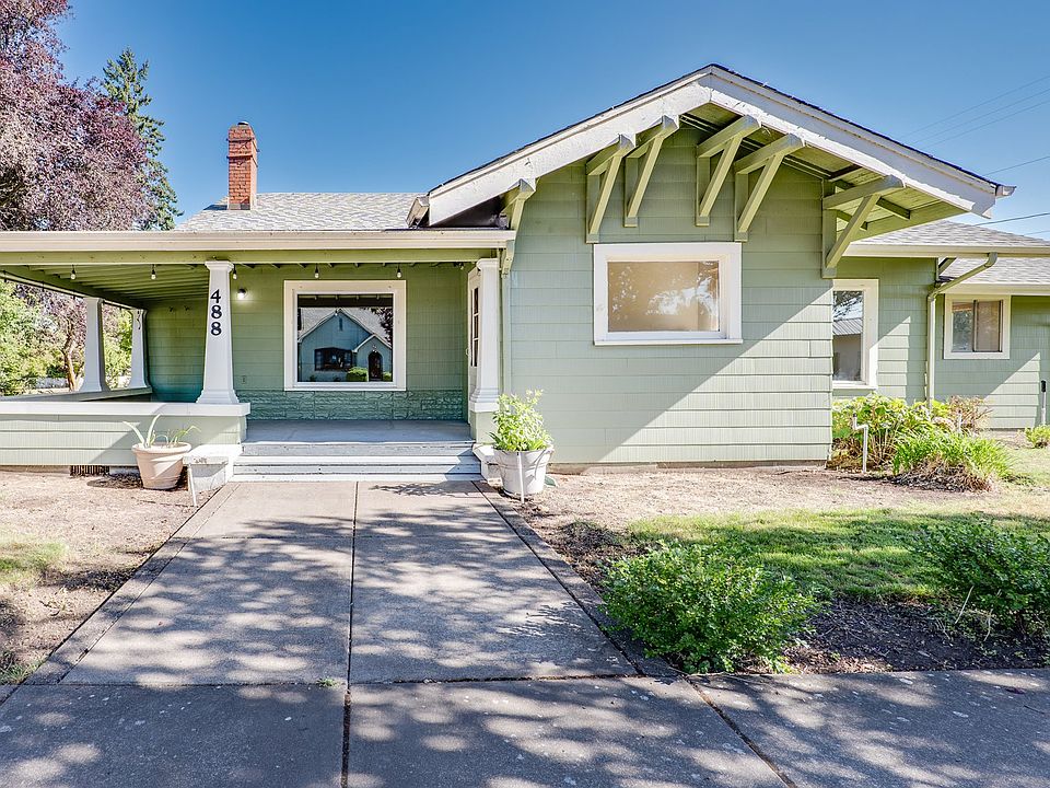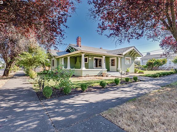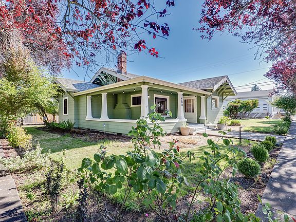 The Daffodil House, 1912 Craftsman Bungalow located in the heart of Junction city. This home features a large covered front porch, 2 bedrooms, 1.5 baths, office with french doors that could be a third bedroom, open floor plan with oak hardwood floors, 9ft ceilings, 9 inch baseboards, crown and picture molding and a gas fireplace. Kitchen is well appointed with plenty of counter space and an oversized refrigerator. The laundry is just off the kitchen. The sale includes a DETACHED 360sqft HAIR SALON W/ HALF BATH, approx. 270 sqft shop and two car garage. The yard features a back patio for entertaining, mature landscaping, an irrigation well, fig, apple, cherry and pear trees, grapes and a large drive way with RV hook-ups. https://youtu.be/0nPBXZZQw4I