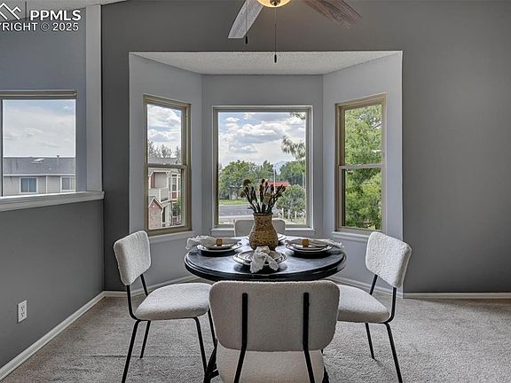 Welcome to your new home in the highly sought after Academy School District 20! This stunning 2 bedroom, 2 bathroom condo has been beautifully updated and is ready for you to move right in. Step inside to soaring vaulted ceilings that fill the living and dining areas with natural light. The cozy wood burning fireplace creates the perfect space to relax or entertain. The modern kitchen is a showstopper, featuring stainless steel appliances, sleek stone countertops, and a stylish tile backsplash. Both bathrooms have been thoughtfully updated, and the two spacious bedrooms provide plenty of comfort and flexibility for your lifestyle. Enjoy low maintenance living in a fantastic location close to shopping, dining, parks, and easy access to I-25 for commuting. With its blend of charm, modern updates, and top-rated schools, this Rockrimmon gem won’t last long! Schedule your showing today and see all that has to offer!